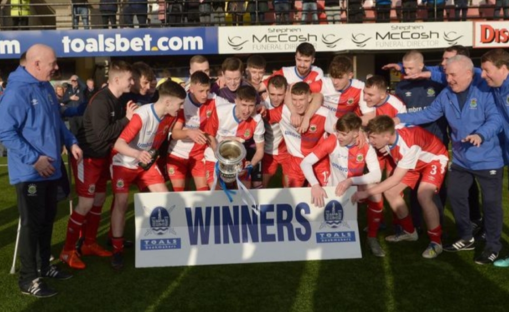 The Steel and Sons Cup front and centre when East Belfast won the 2018 edition. Image from belfastlive.co.uk.