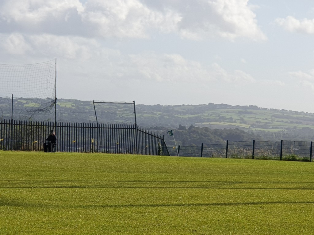 What started off as a wet and damp day dried up, rain clouds clearing and the sun shining through to add warmth to the climate. The grass pitch soaked the rain well to give a slick look to the surface, with quite the backdrop to admire stretching as far as the distant Mourne Mountains.