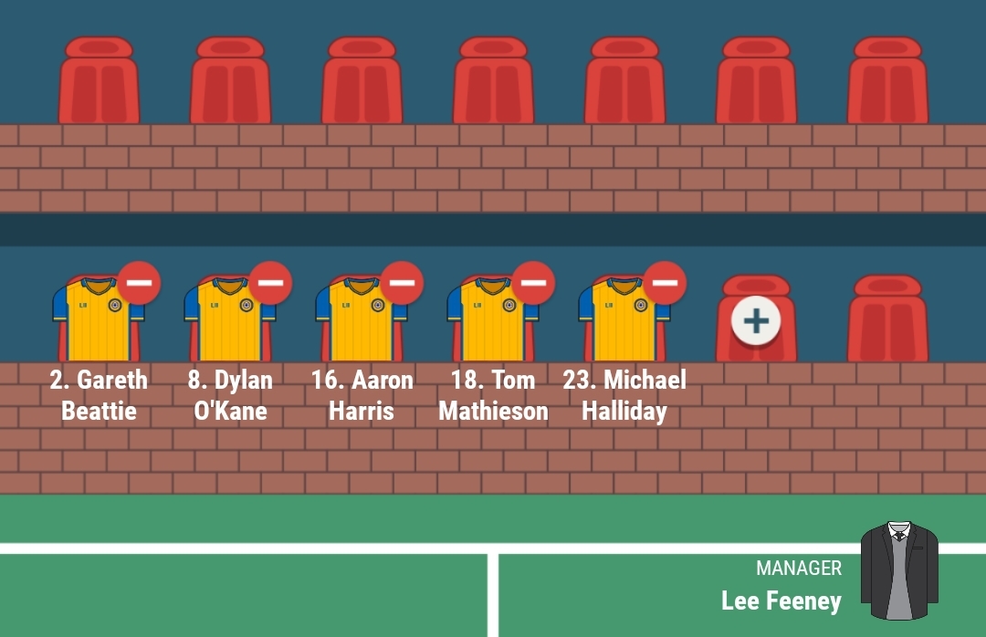Ben Arthurs and Adam Neale returned as a strike-pair up top, replacing injured duo Scott McArthur and Jordan Hughes. Karl Devine was restored to the start in midfield in place of Aaron Harris, who dropped to a five-strong subs bench, while the usual defensive line of three saw Ryan Arthur and John Boyle re-enter.