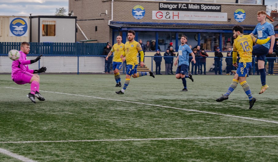 The result props Bangor up to 43 points from 48 available, now a full 15 ahead of Limavady and five clear at the top of the league. With Queen’s University victorious over Banbridge Town, they lift into second-place ahead of their crunch clash with Ballymacash Rangers – who they provisionally replace – on Saturday.
