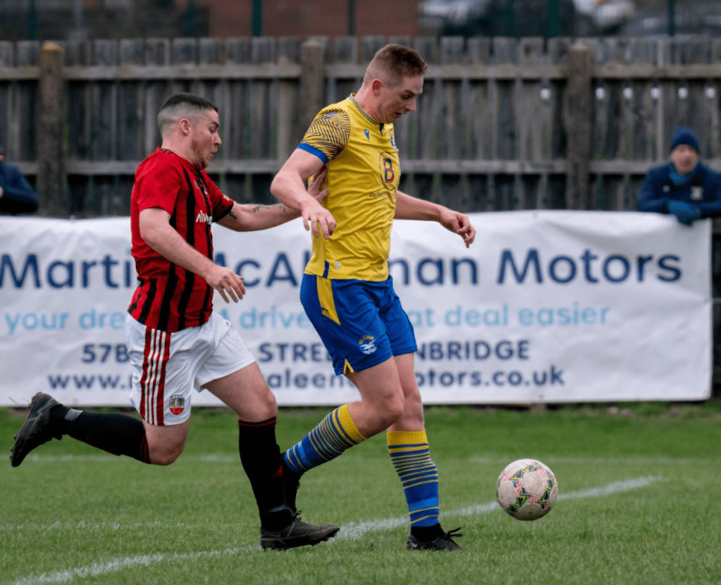 A Town free kick was defended ably by those in yellow and blue before Reece Neale launched upfield with a perfectly weighted 60-yard pass into Arthurs’ path, and the Kircubbin line-leader never looked like missing as he rolled beyond Hamill and into the net. It was a simple idea, a route-one ball and a lightning counter, but it proved no less effective.