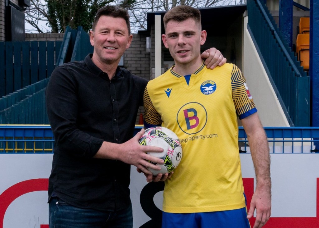 Bangor captain Lewis Harrison following the previous weekend’s victory over Tobermore United, backed up by a point against Queen’s University in which he marked the scoresheet