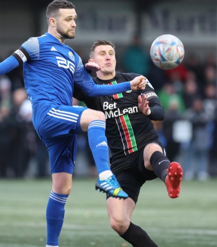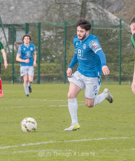 Against Limavady United at the end of February, Gareth Beattie described manager Lee Feeney’s choice of who to start in the attacking midfield role as a “coin toss”. While the in-form Tom Mathieson was rested, Scott McArthur (left) and Jamie Glover turned in impressive accounts – the latter from left wing-back – to all but prove the point of this hotly contested selection dilemma. Image from Jordan Connolly/Life Through A Lens NI.