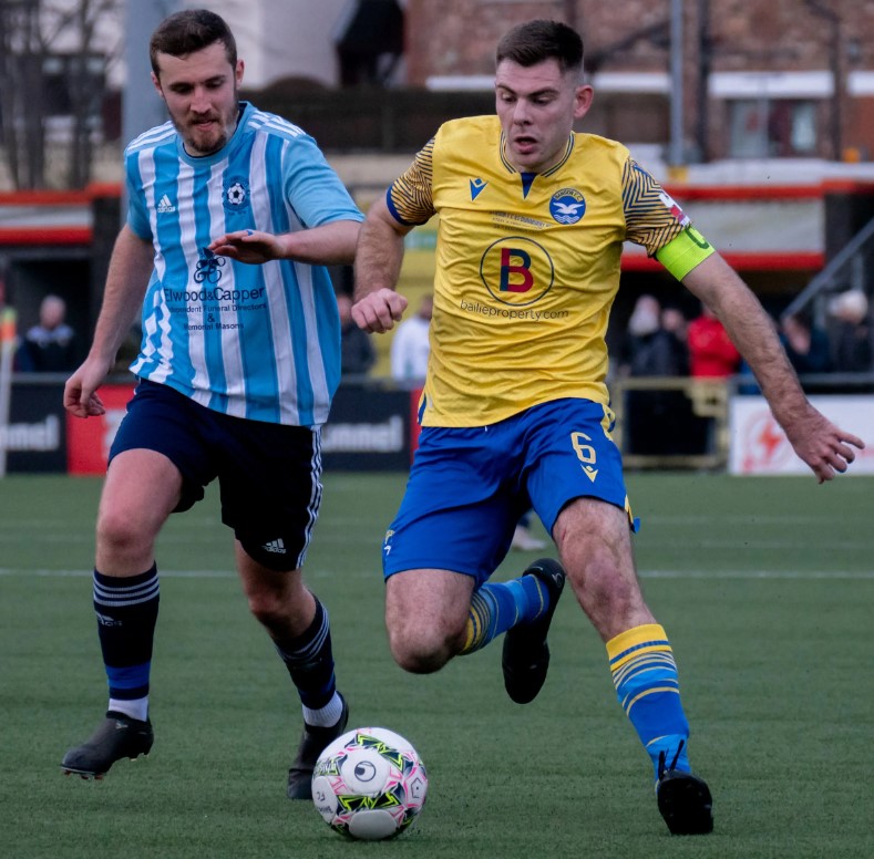 Irrespective, it has been an impressive first season in yellow and blue indeed for midfield orchestrator Aaron Harris, and he particularly marked his credentials and skillset out when stepping in to cover the void left by Karl Devine from the middle of February onwards. Image from Football NI app.
