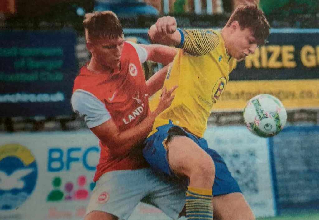 16-year-old front-man Sonny Redford, who impressed in two senior appearances at the tail end of last season, featured from the bench during Bangor’s 6-0 pre-season defeat at the hands of Premiership champions Larne. Image from Sarah Harkness.