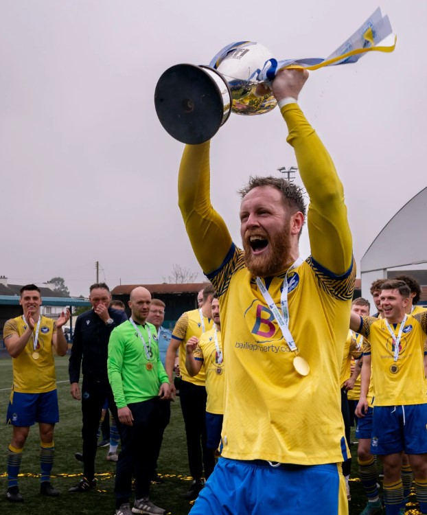 Having also been named Man of the Match in one of the great days in the recent history of the club, putting in an authoritative Steel and Sons Cup Final performance where the third-tier representatives had the edge over Dunmurry Rec, Hume – who found the net against Armagh City and Limavady United last campaign – excelled as part of the back-three system and is respected by his peers across all quarters.