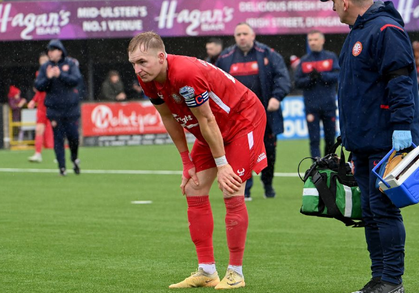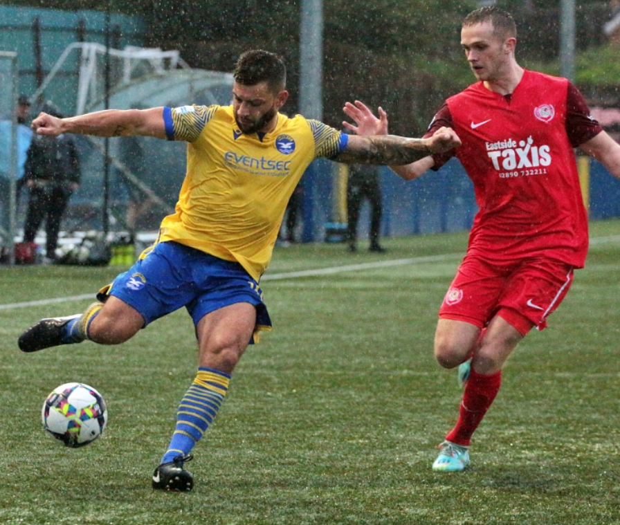 Ross Redman, a defender known for his wand of a left foot from set-pieces, has rejoined Portadown after helping Ballymena United to the Irish Cup Final. Image from Paul Harvey/Ballyclare Comrades media.