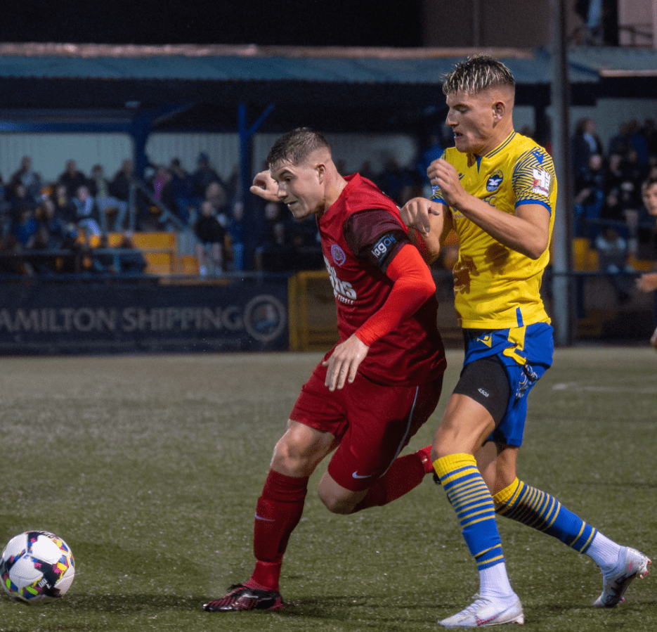 After notching up his first goal of the season last time out against Dundela, the appetite of a goalscorer is always to add to their tally, and that will be no less true for Ben Arthurs, who got his scoresheet up and running with a headed finish from Ben Cushnie’s corner. Image from Jordan Connolly/Life Through A Lens NI.