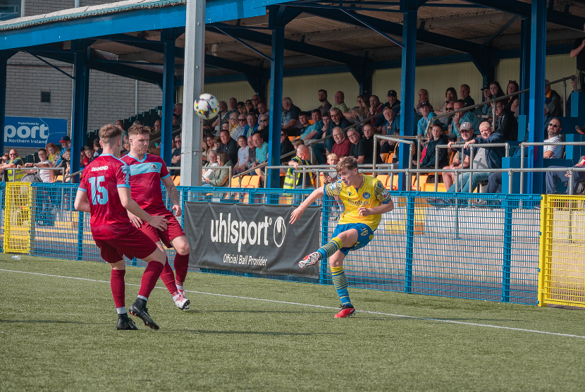 Picking up where he left off. 364 days after assisting Ben Arthurs with a cross on his Bangor debut against Dollingstown, Seanna Foster notched up his eighth set-up in yellow and blue when he provided Lewis Francis with the delivery to head home a leveller against Institute; his introduction turned the tide of the contest and that was reflected on the stat sheet. Image from Jordan Connolly/Life Through A Lens NI.