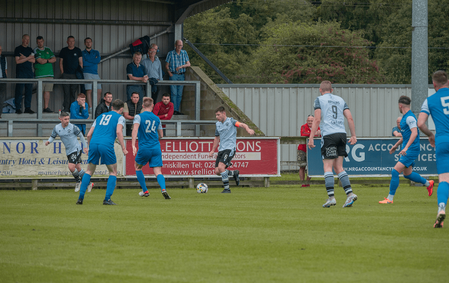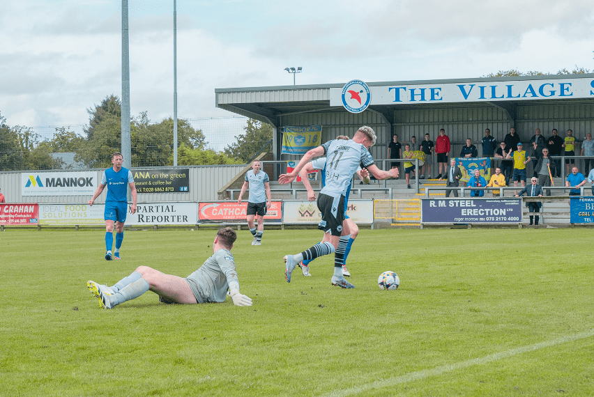 Ballinamallard looked to play out from the back and build towards the opposition goal, but kept finding the ball being returned to sender. The side so often seen in yellow and blue who this time were donning their black and white away strip applied pressure in the right places – and they made the strain they put on the defensive line count with haste.