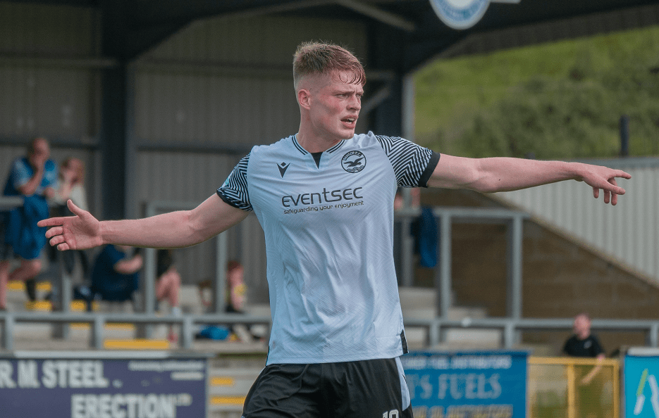 The goal count Ben Arthurs has been bringing to the table took another notch upwards when he delivered in the fourth minute of the contest against Ballinamallard United. That rounded off a remarkable spell of FIVE goals in 66 minutes’ worth of football played, with the striker up to six for the season. Image from Sarah Harkness.