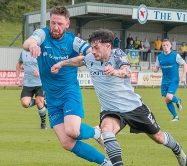 Former Linfield defender Mark Stafford carries an imposing reputation in the game and has a penchant for popping up with important goals even in the later stages of his career. The likes of Scott McArthur faced a stern challenge to get the better of him. Image from Jordan Connolly/Life Through A Lens NI.