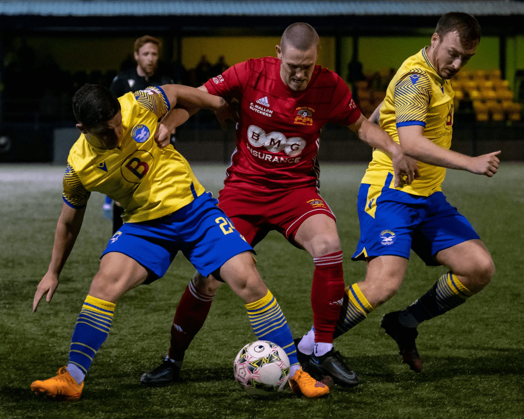 The midfield trio of Harrison, Jack Henderson and Karl Devine, a combination that was featuring for the first-ever time, also held their nerve in a three-on-three battle in midfield – Devine, who had not started since facing Ballymacash Rangers in mid-February, was a particularly well-oiled machine after much rehab to return to this point.