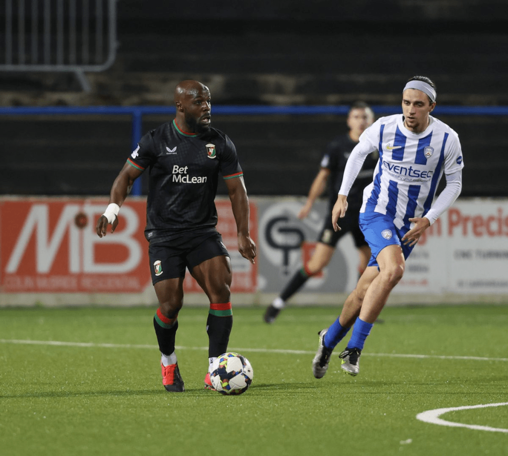 An equaliser in eventual defeat to Cliftonville didn’t blot the fleet-footed winger’s individual copybook; he has a fast-paced and fearless style of play that electrifies any game of football.