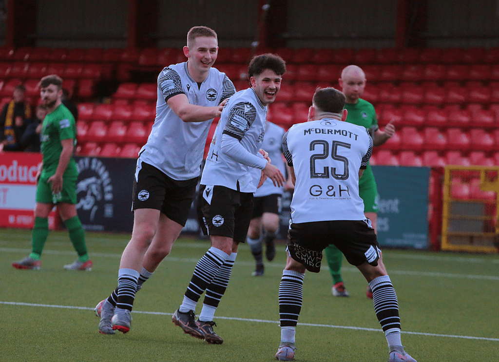 Newington were the most recent opponents to take three points against the north Down panel – a 2-1 success at Inver Park on November 11, when Zach Barr and Neil Cummings hit the target in the second half before Ben Arthurs slotted home a late consolation – but on their return to Larne, it proved Bangor’s day; Arthurs bulleting home a header in between two Scott McArthur strikes before Fra Rice bagged one for the hosts in a 3-1 away triumph.