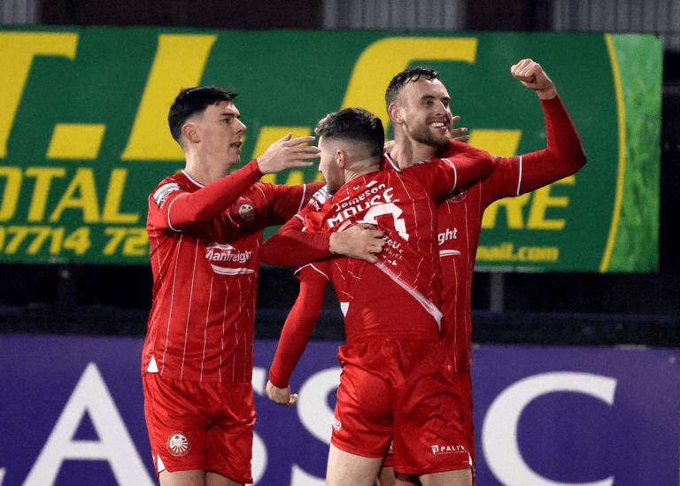 Having recovered from a shock early deficit to defeat Queen’s University 3-1 at home, they then recorded away successes over their top-four rivals Glentoran (2-1) and Larne (2-2 – won on penalties) before emerging from a hard-fought encounter with Dungannon Swifts at Stangmore Park with the Final say courtesy of a brace by Kyle McClean on the road, with Joe Moore striking late to make it a nervy finale in the 2-1 win.