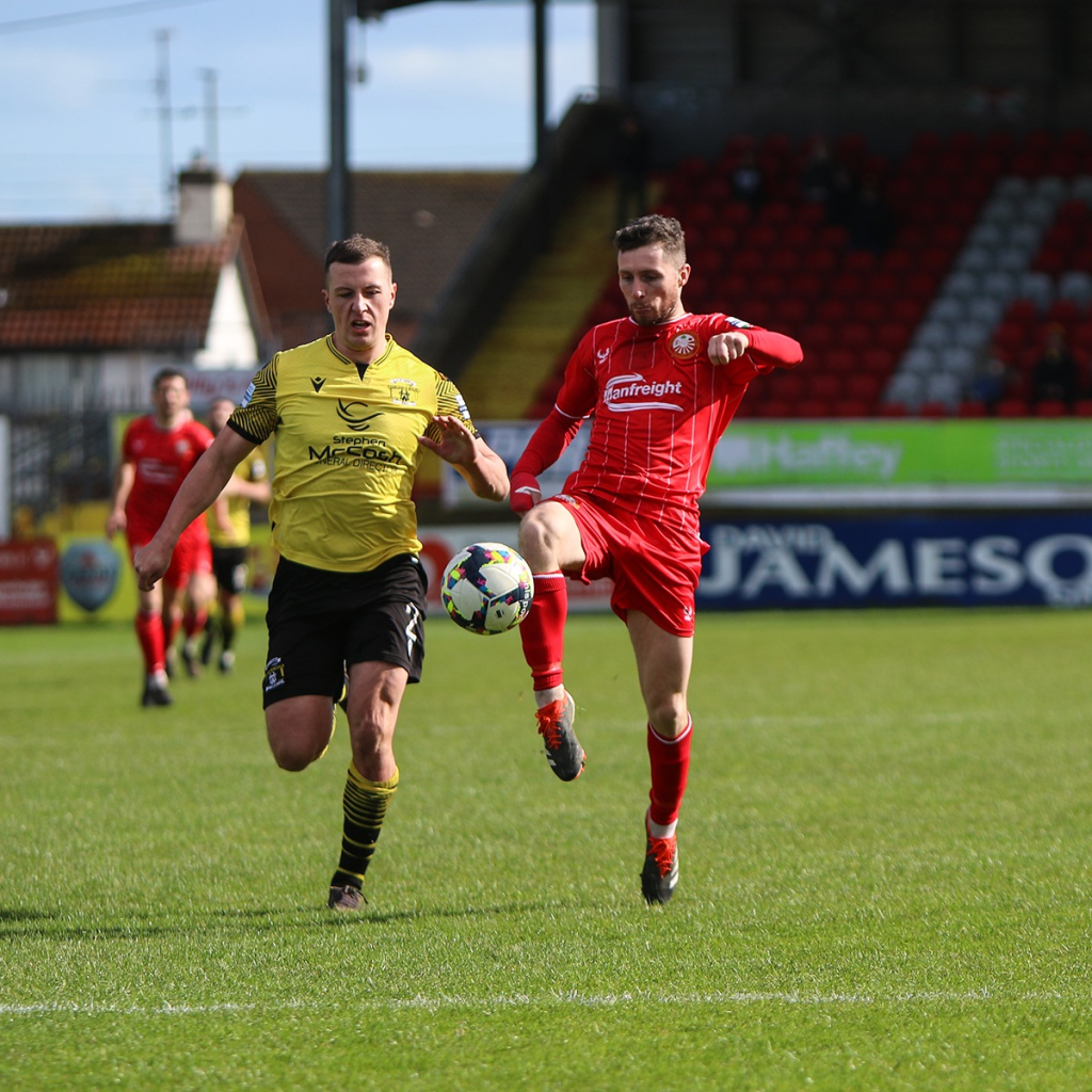 The weekend’s action saw Portadown prevail 3-1 over Harland and Wolff Welders, with goals from Eamon Fyfe, Ryan Mayse and Paul McElroy seeing them ashore, while the simultaneous Seasiders fightback in east Belfast when Ben Cushnie, Lewis Francis and Ben Arthurs finishes turned the tide after Jordan Jenkins’ ninth-minute opener was as equally welcome at Shamrock Park as it was for the Clandeboye outfit.