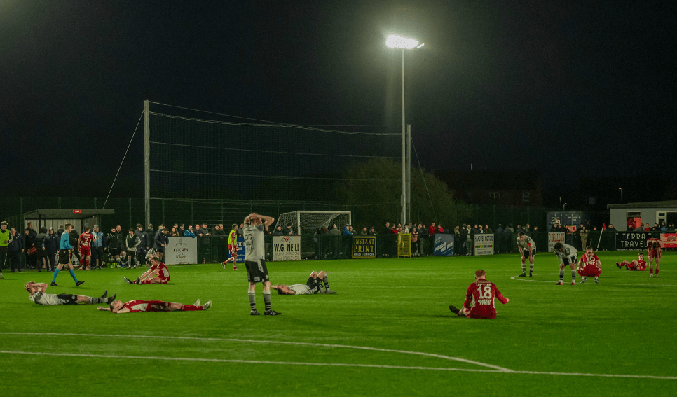 The emotions could be bottled up and you still wouldn’t contain them. It’d have been bloody hard to – no less than that by full-time at the BMG, you had the sight of two sets of distraught players sinking to their knees, falling to the ground, hands on their heads… well, take your pick.