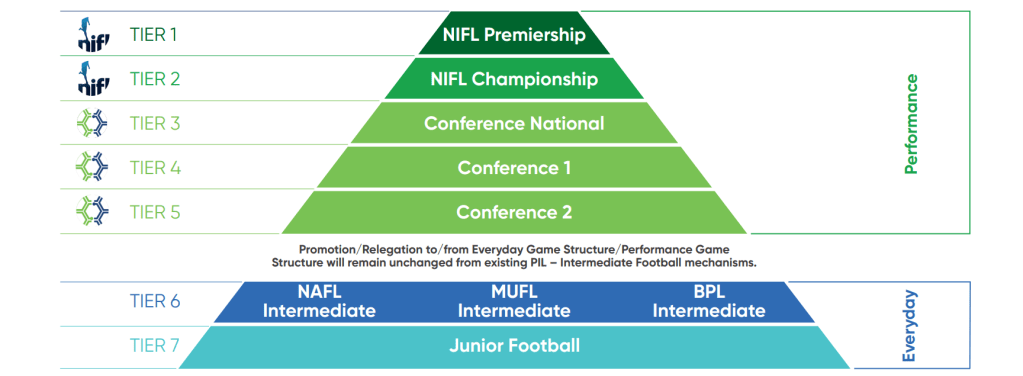 Meanwhile, as far as the future of the NAFL, BPIL and Mid-Ulster League are concerned, they will still exist but instead be bumped down from the fourth level of the pyramid to the sixth.